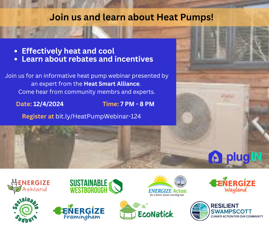 Co-sponsored by plugIN communities (Acton, Ashland, Framingham, Natick, Sudbury, Wayland, and Westborough) and Resilient Swampscott.